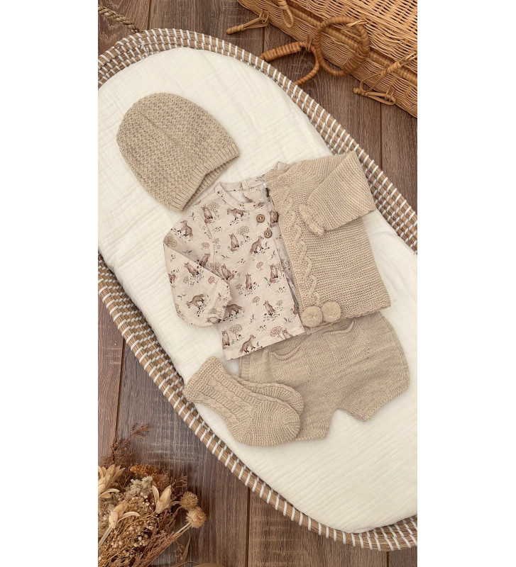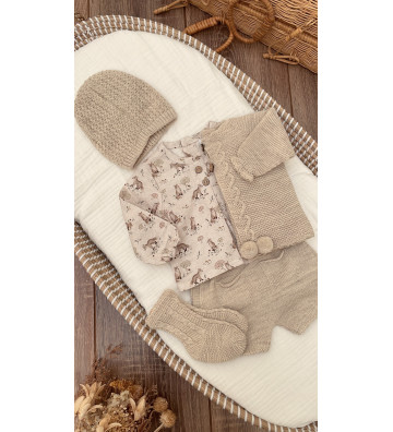 CONJUNTO DE BLUSA,PANTALÓN,REBECA,GORRO Y PATUCO ARENA ZORRITOS (VISI)